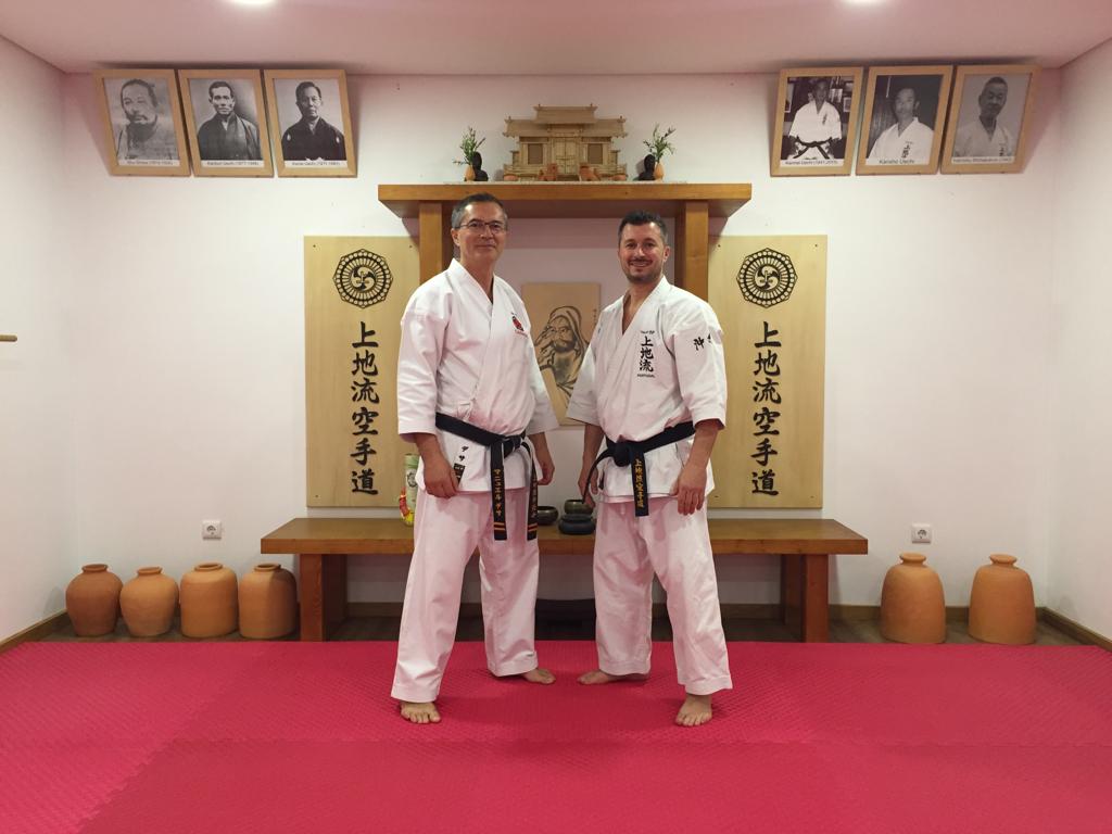 Sensei José Ferreira com Sensei Yukinobu Shimabukuru (9.º Dan), Soke do estilo Uechi Ryu na Europa.