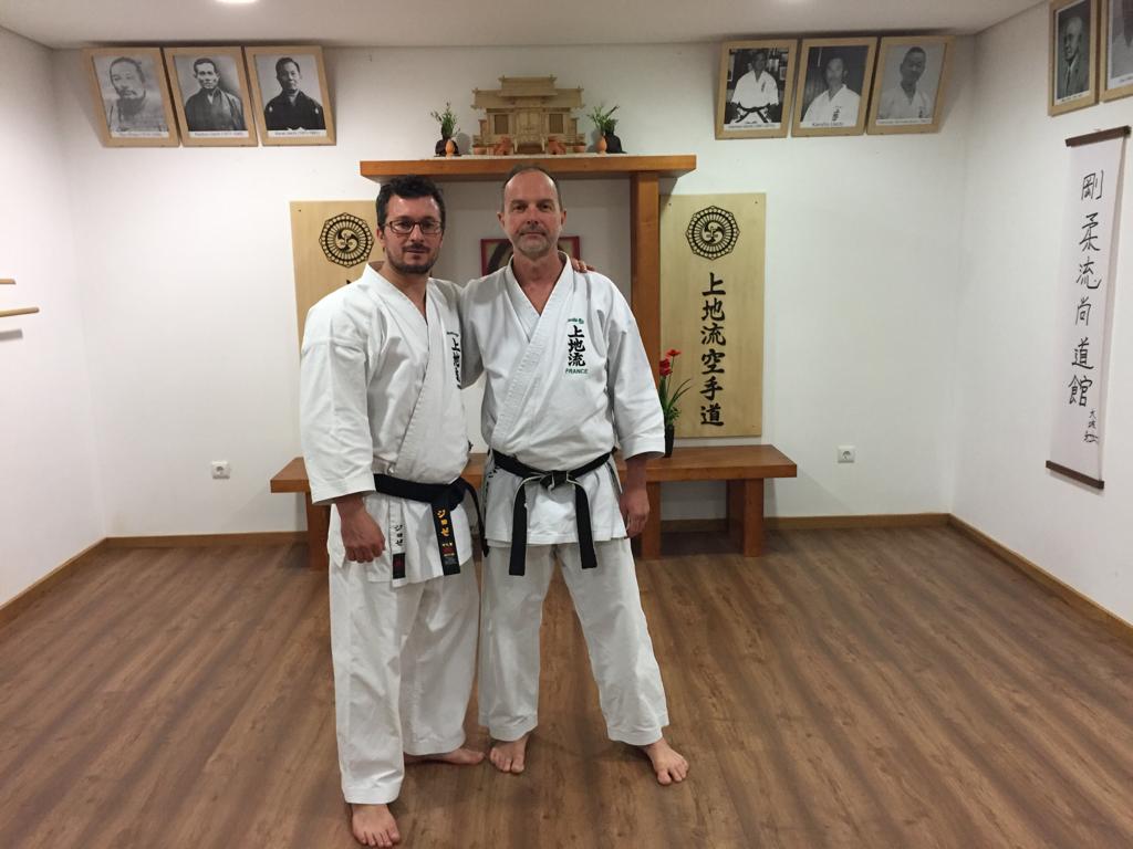 ButtonSensei José Ferreira com Sensei Jean Smith (6.º Dan), instrutor no Dojo Toulouse Shubukan, em França.